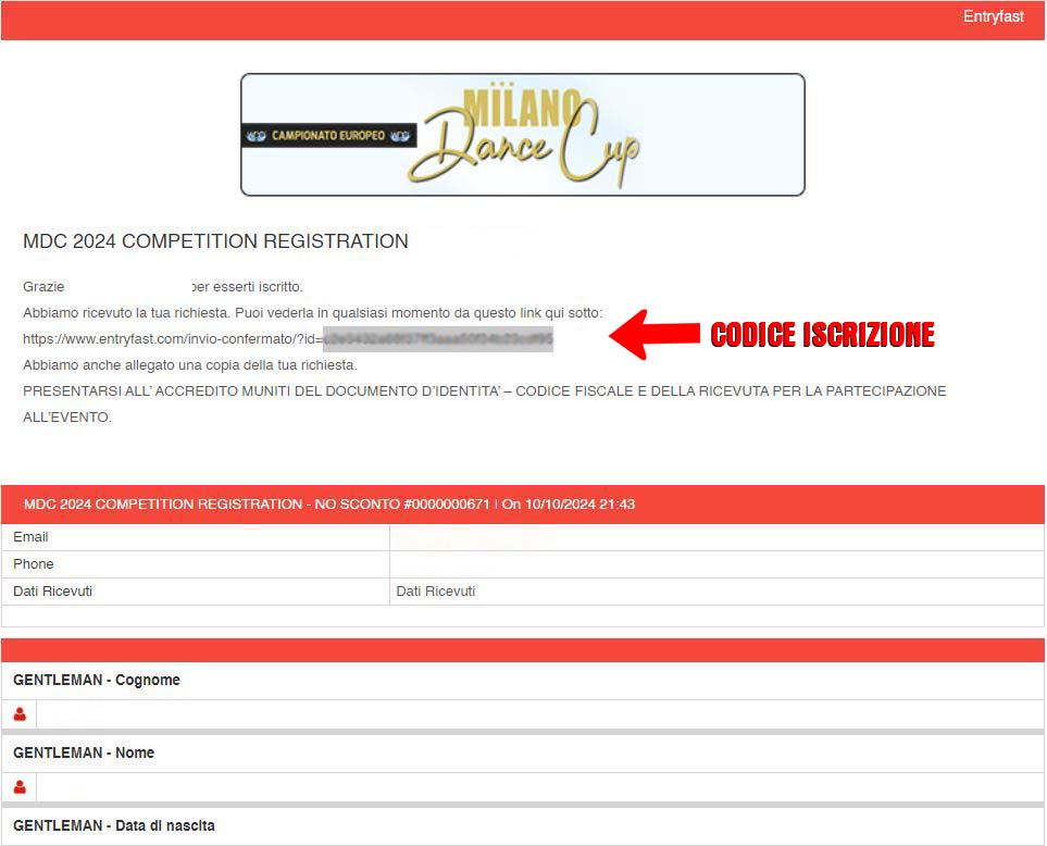 Il modulo con tutti i dati inseriti è stato memorizzato nei sistemi e prodotta ricevuta inviata tramite la mail inserita nella fase d’iscrizione